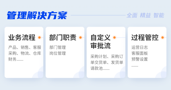 积加ERP-X版依托自身“全面·精益·智能”的特质,从运营、供应链、财务、管理四个模块出发,给出全闭环的解决方案: