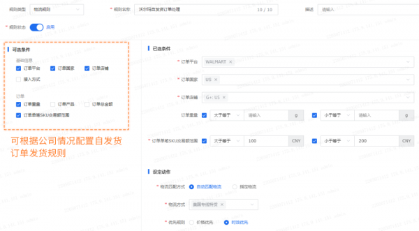 支持对接卖家自营仓库及市面上主流物流商,实现自发货订单实时获取,无需手动导入同步。同时,卖家可以设定自发货订单自动处理规则、仓库物流匹配规则,设定之后订单将自动下推到仓库物流板块,降低跨组织沟通成本。