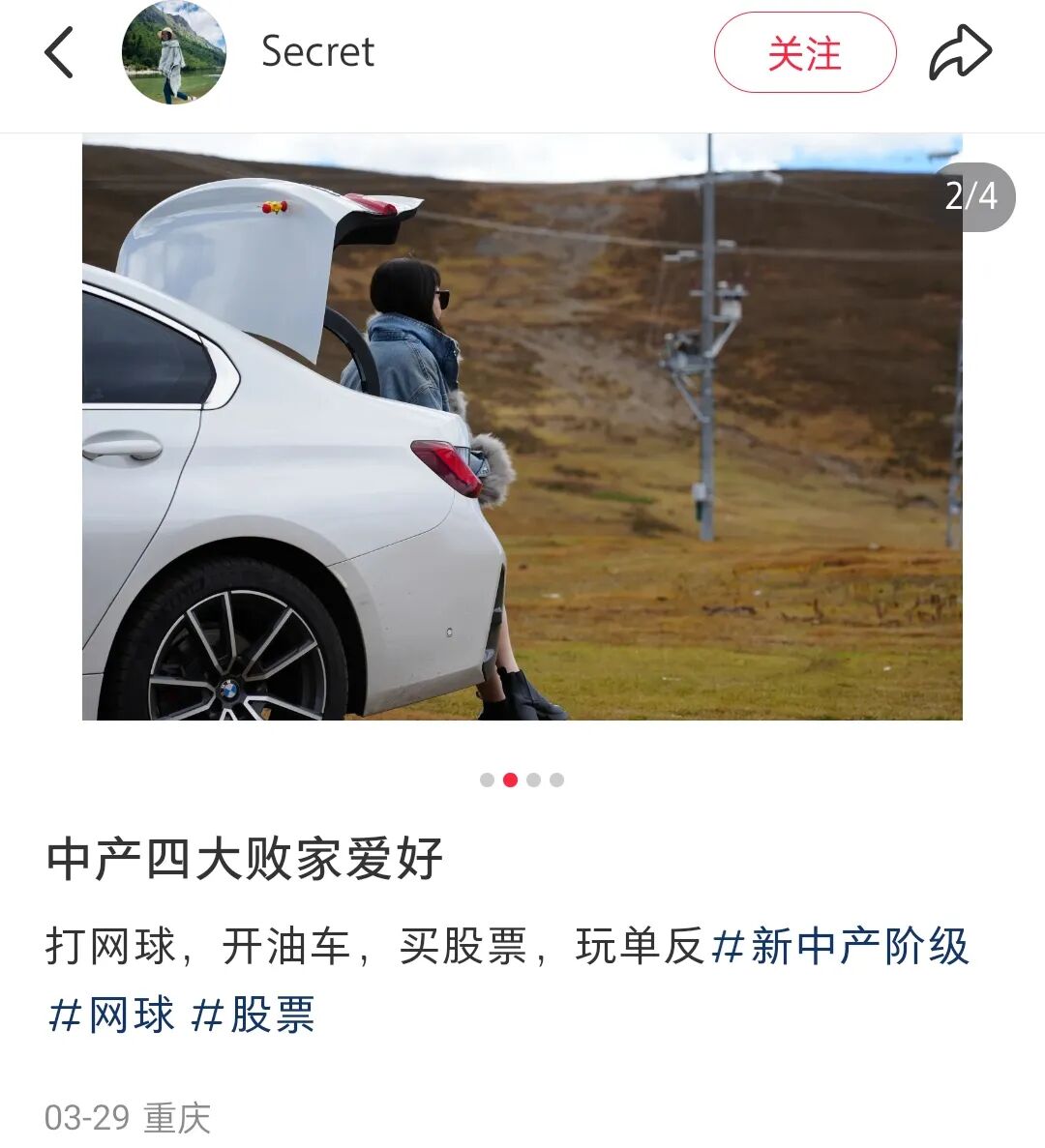 有人说,新时代的韭菜是炒股、屯黄金、开油车,在社交媒体上,一些人已将开油车、买股票列入中产四大败家爱好中。