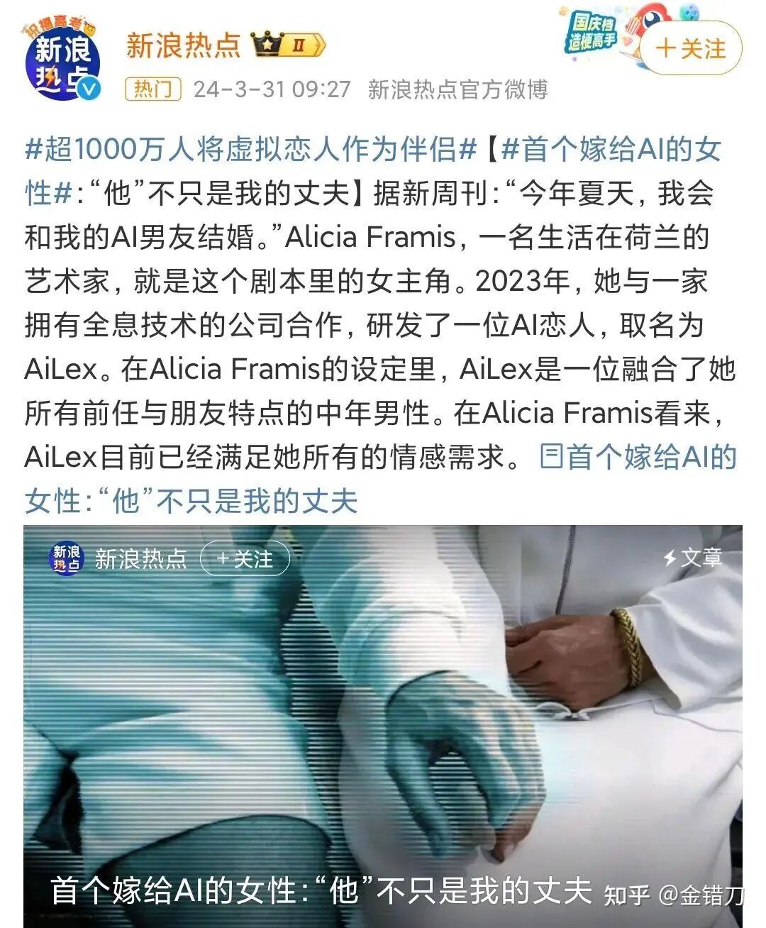 2024年夏天,一名生活在荷兰的艺术家,与她参与研发的AI恋人结婚了,成为首个嫁给AI的女性。