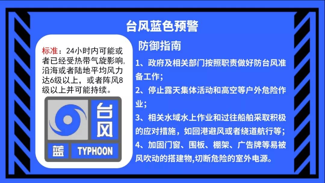 表示24小时内可能或者已经受热带气旋影响,沿海或者陆地平均风力达6级以上,或者阵风8级以上并可能持续。
