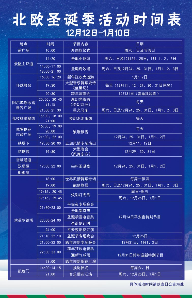 详细信息:深圳世界之窗北欧圣诞季活动时间表