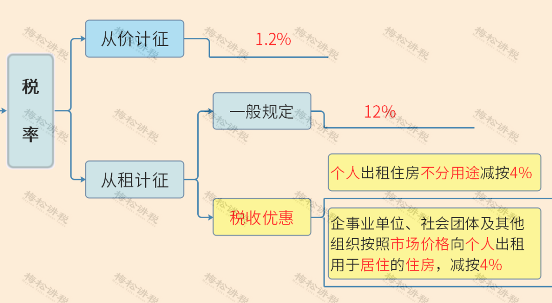 房产税是对房屋产权所有人征收的税种,分为从价计征和从租计征两种。适用的税率如下: