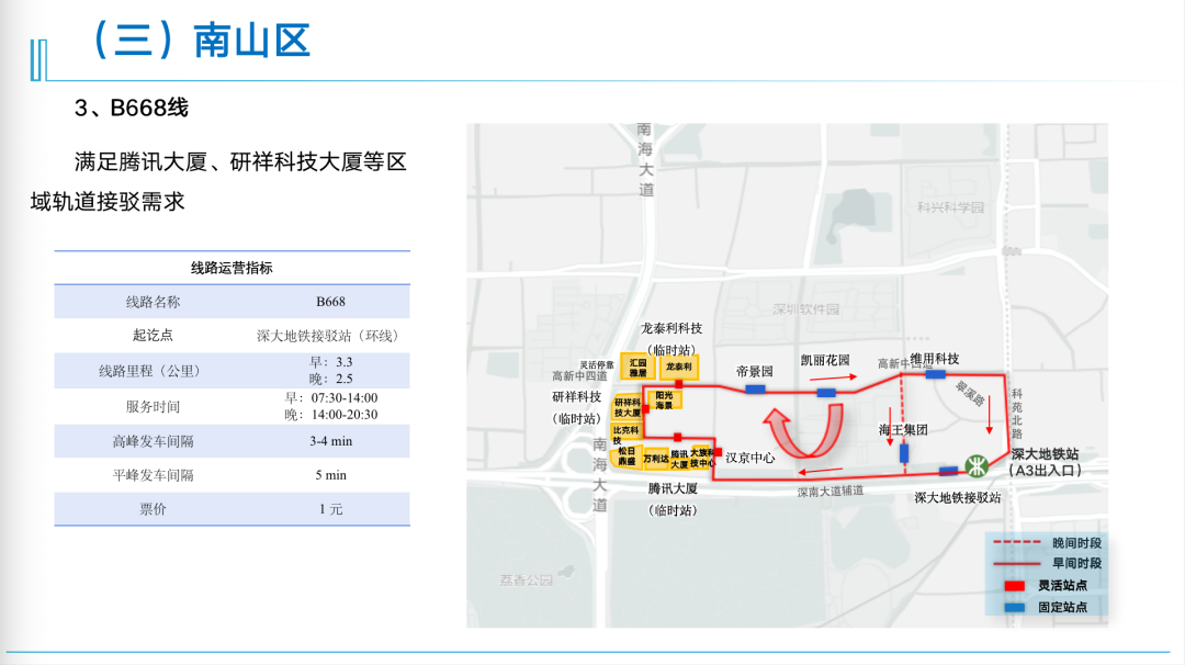 深大地铁接驳站、汉京中心、招呼站(腾讯大厦、研祥科技、龙泰利科技)、帝景园、凯丽花园、维用科技、深大地铁接驳站
