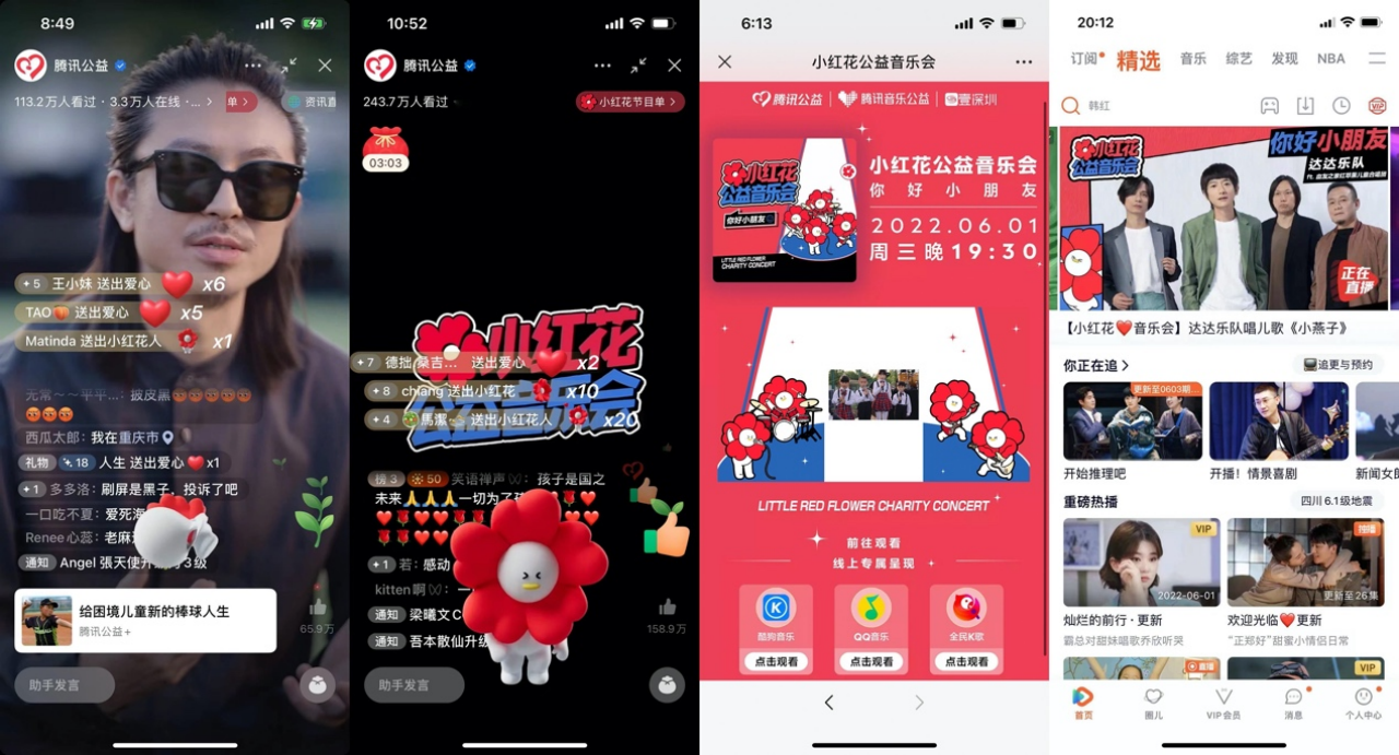 今年六一期间上线的“小红花公益音乐会”就是一个不错的尝试。“没想到,儿歌居然把我唱哭了”,在腾讯公益联合公益机构打造的这场音乐+公益的沉浸式体验中,观众不仅在耳熟能详的旋律收获了感动,还通过定制版小红花大赏等形式,丰富了公益“新”体验。