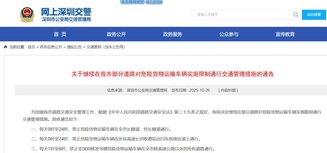 三、每天1时至6时,禁止非深圳核发号牌危险货物运输车辆在全市除高速公路以外的所有道路通行。