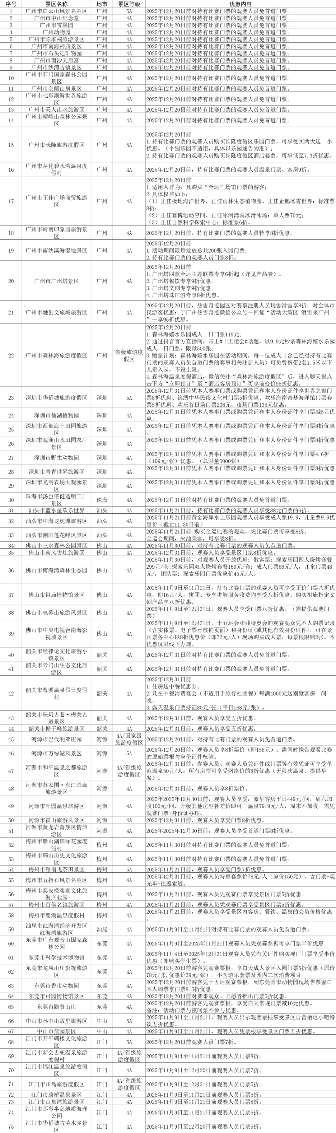 1.以上景区包含部分面向大众游客免首道门票的景区;