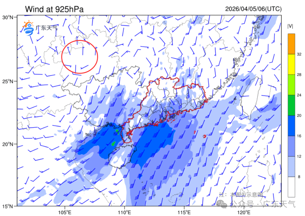 5日(清明节)-6日,高空槽东移过境,西南低涡南侧有风速辐合区,不稳定能量增强,广东省自西向东有一次大雨到暴雨、局部大暴雨的降水过程,并伴有短时强降水和雷暴大风等强对流天气。