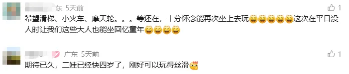 对于儿童乐园即将回归的消息,网友们纷纷“许愿”:希望大象滑梯、12生肖、小火车……这些童年回忆还能再见面!