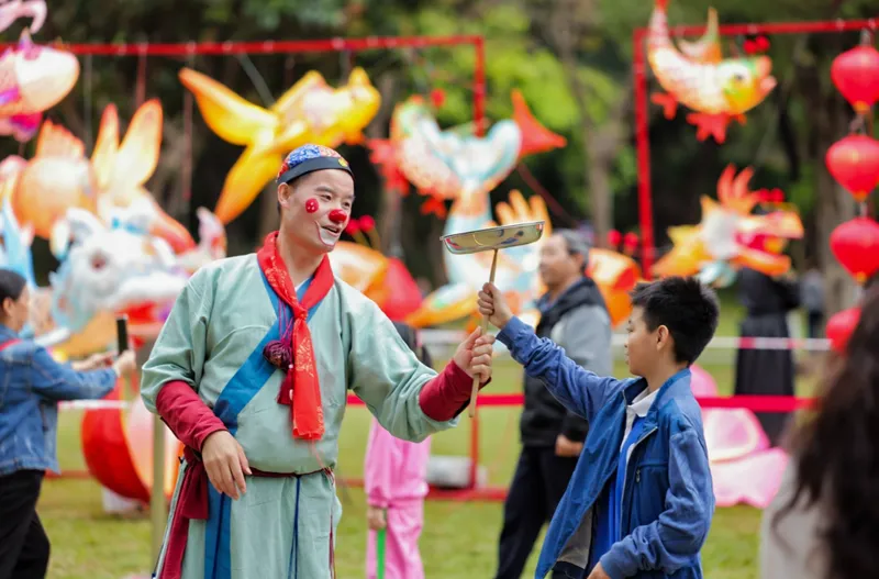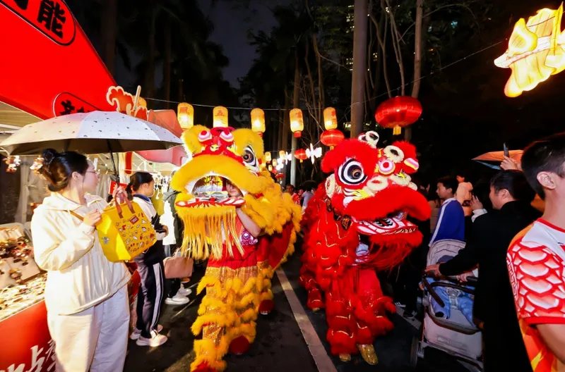 中山公园里,6米高的非遗鳌鱼灯组与4米高的马形彩灯交相辉映;南头古城中,剪纸骏马装置沿街铺展,市民在非遗传承人指导下体验壮锦织布、铜凿剪纸;锦绣中华的2万平方米水面上,《翠湖幻境》非遗秀将水上长龙与火壶钢花融为一体。这场元宵非遗游园会,吸引了近27万人次的线上线下关注量。