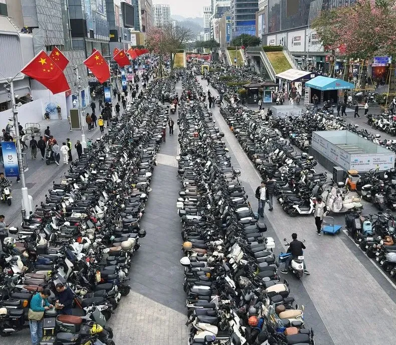 电动自行车,让深圳人痛并快乐着。在快捷高效的同时,也带来各种乱象和苦恼。身边,有年长者,因担心被碰撞和冷不丁的嘀嘀声,不敢出门上路行走。一位前同事,在单位门口,被外卖小哥直接撞飞入院,一场大手术后,被打了钢钉的胳膊,一到阴天就隐隐作疼。还有一天,在新洲河边的路上,两位外卖骑手相撞,一位,一动不动在躺在路面上,一位,半坐在地面上,痛苦呻吟……年初,深圳交警向媒体透露,深圳已有超600万辆登记上牌的电动自行车,远超机动车的473.29万辆(2025年12月深圳市公安局交通管理局数据)。有牌的电动自行车占比约为75%-80%,保守估计还有20%左右未登记上牌,平均3人便拥有一辆电动自行车,电动自行车已成深圳保有量第一的交通工具。根据这组数据推算,深圳实际拥有的电动自行车数量应该有800万辆(本文采用的600万辆,是指上牌的电动自行车)。每天,这600万辆电动自行车的出行和安放,让这座城市失去了原有的平衡。肉眼可见处:商场门口被包围,地铁出入口处被占领,小区四周被围堵……深圳,成了“电鸡之城”、“电鸡围城”的代名词。