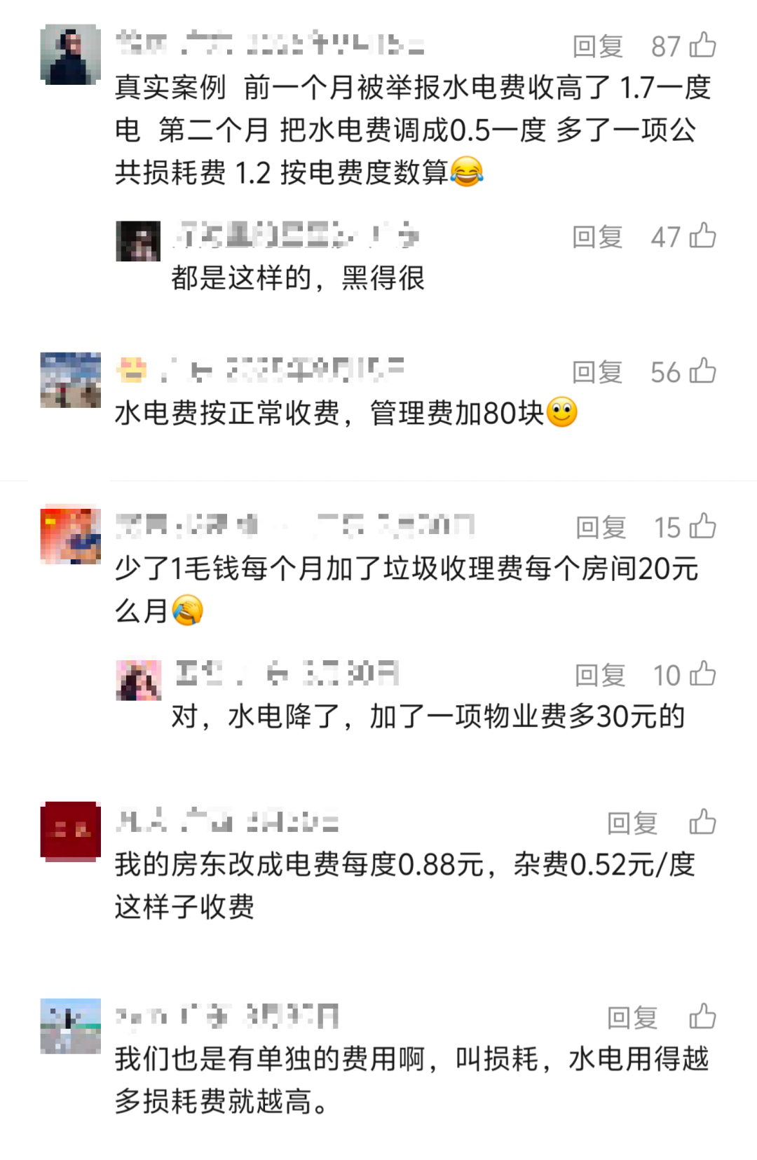 有房东被举报1.7元/度的高价电费后,转头把水电费降到0.5元/度,却新增了1.2元/度的“公共损耗费”;有租客水电费按正常标准收,却被每月加收80元“管理费”,换个名目继续收割。