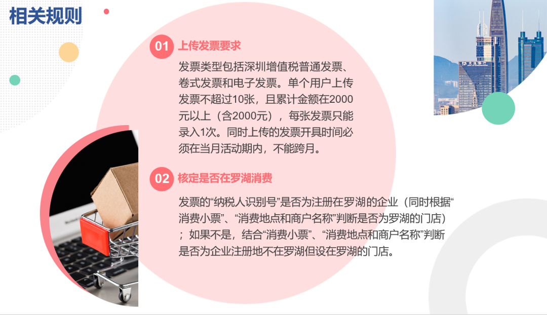4-6月期间,消费者单月在罗湖辖区商户购物、住宿、餐饮等消费累计满2000元以上的,可申请参与当月抽奖活动。