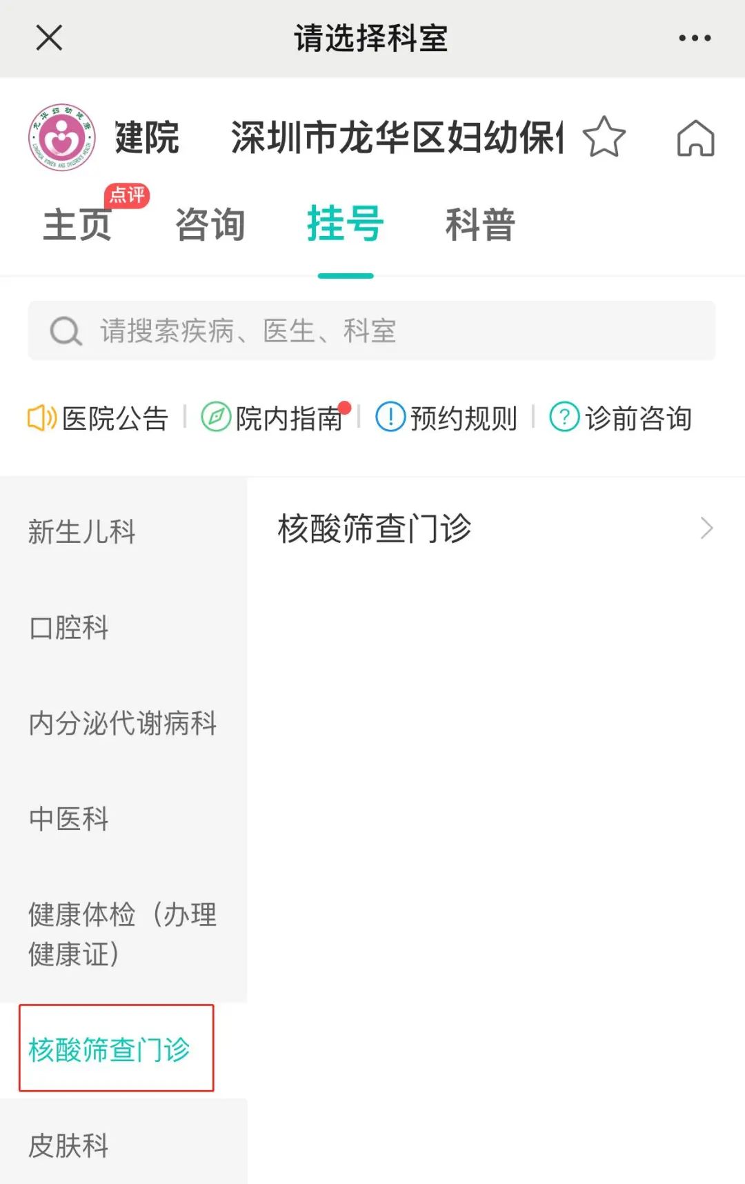 详细信息:2021年深圳龙华区人民医院核酸检测预约流程(附预约入口)