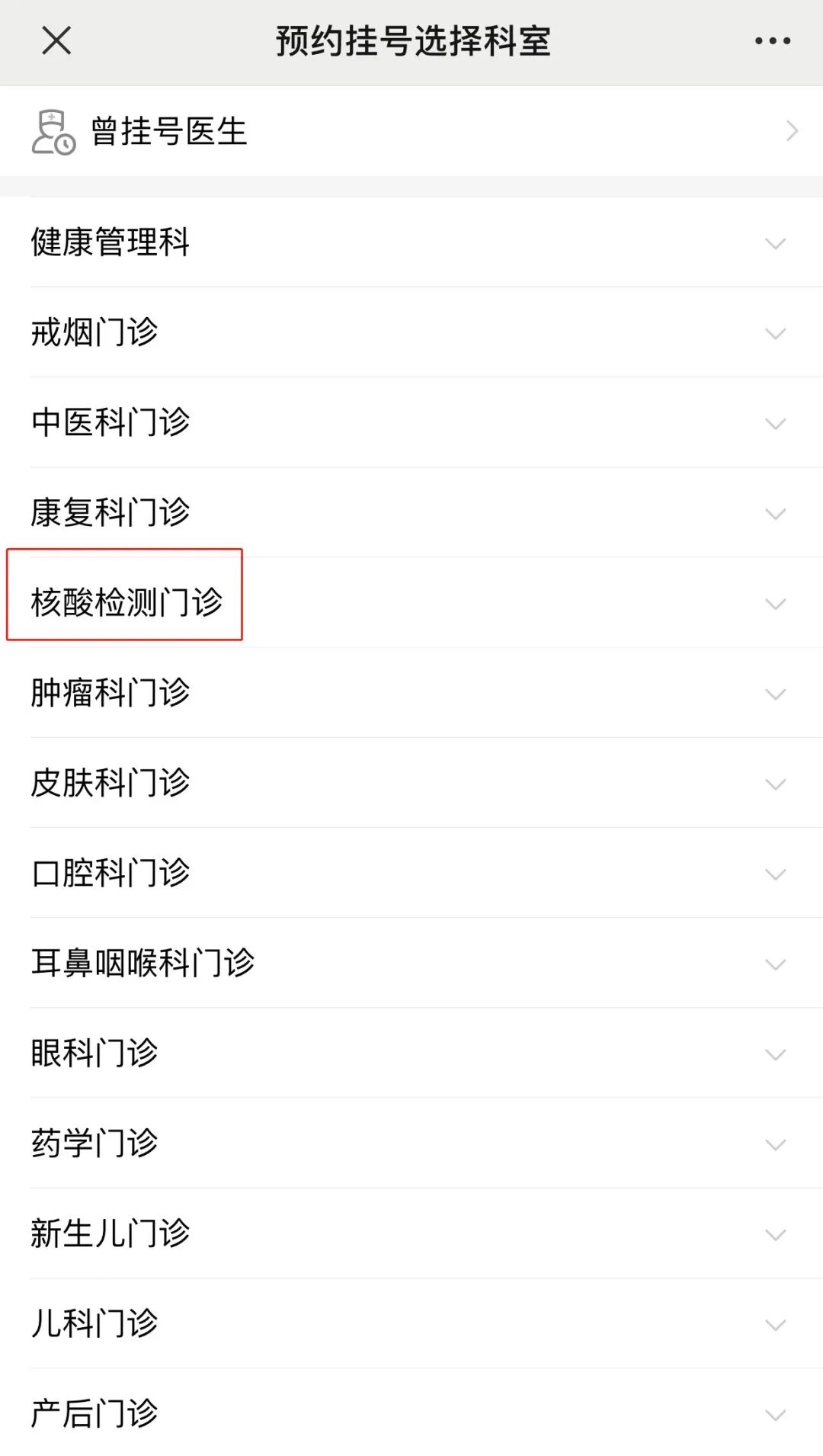 2、点击“核酸检测门诊”进行预约