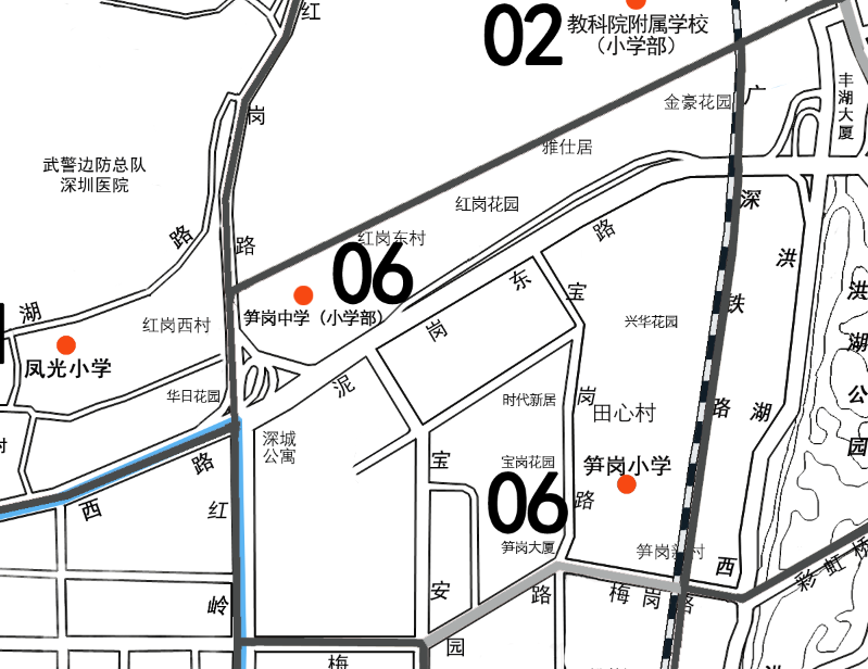 2.未来学校初中部。未来学校现址初中原属深圳市笋岗中学招生范围,不单独划分招生地段,初中部与深圳市笋岗中学、深圳市罗湖教科院附属学校初中部设为大学区。