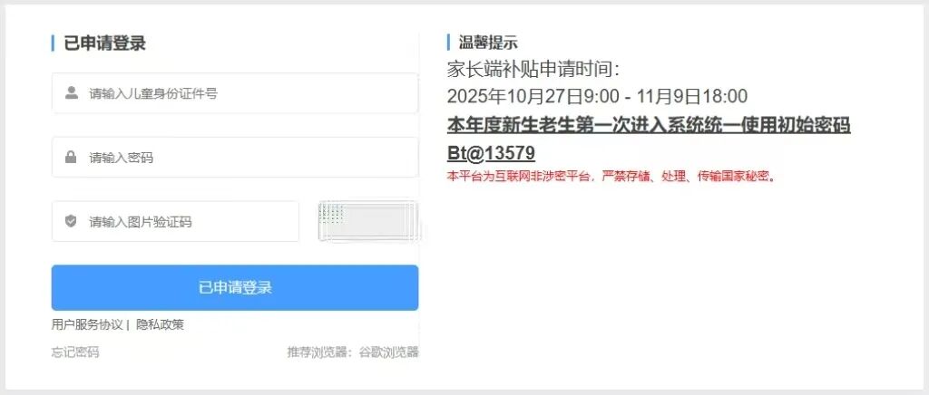 ①登录“龙岗区在园儿童健康成长补贴系统”家长端进入网站。