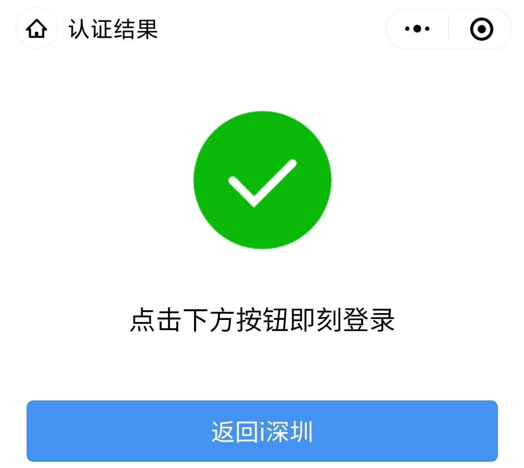 人脸核验通过后点击页面内的“返回i深圳”按钮,返回i深圳APP页面。