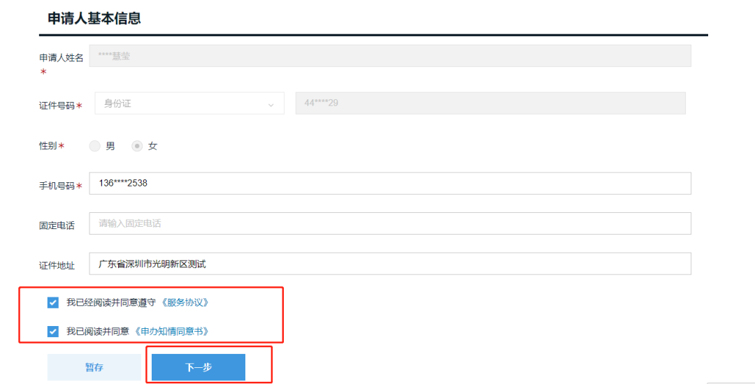 1.表单填写页面系统已自动填充部分信息,申请人需补充填写完相关信息,并核对已填信息是否准确。