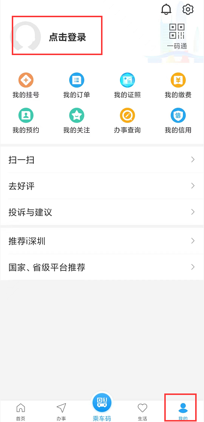 家长在手机的应用商城中搜索“i深圳”app进行下载安装,然后打开i深圳在【我的】界面点击页面左上角的“点击登录”进行登录操作。