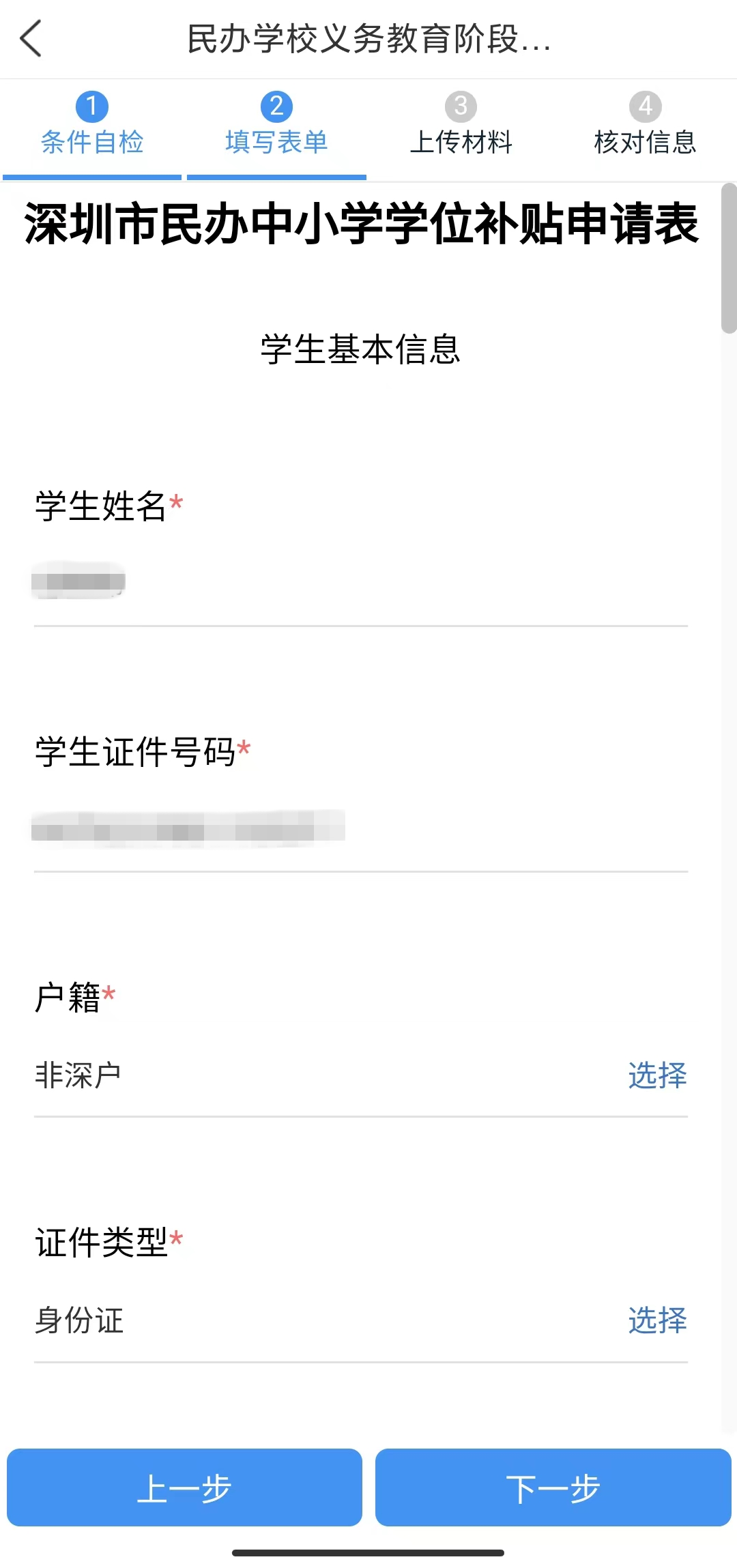 在申请页面确认基本信息无误后,点击页面底部的“下一步”按钮,进入【填写表单】页面。