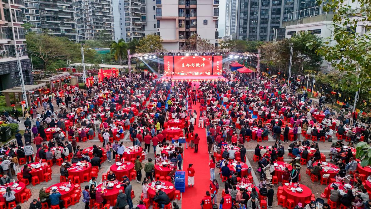 1月31日晚,桃源街道福光新村文化广场灯火璀璨、欢声洋溢,福光新村2026年迎新春晚会在此温情举行。千余名村民与社区宾客欢聚一堂,共享热气腾腾的百桌盆菜宴,欣赏精彩纷呈的文艺演出,在喜庆祥和的气氛中共迎新春、共叙乡情、共话未来。活动还特别邀请了在桃源学习的部分外国留学生和崇文花园老年居民参与,让多元群体融入本地节庆文化,展现了开放包容的人文温度。